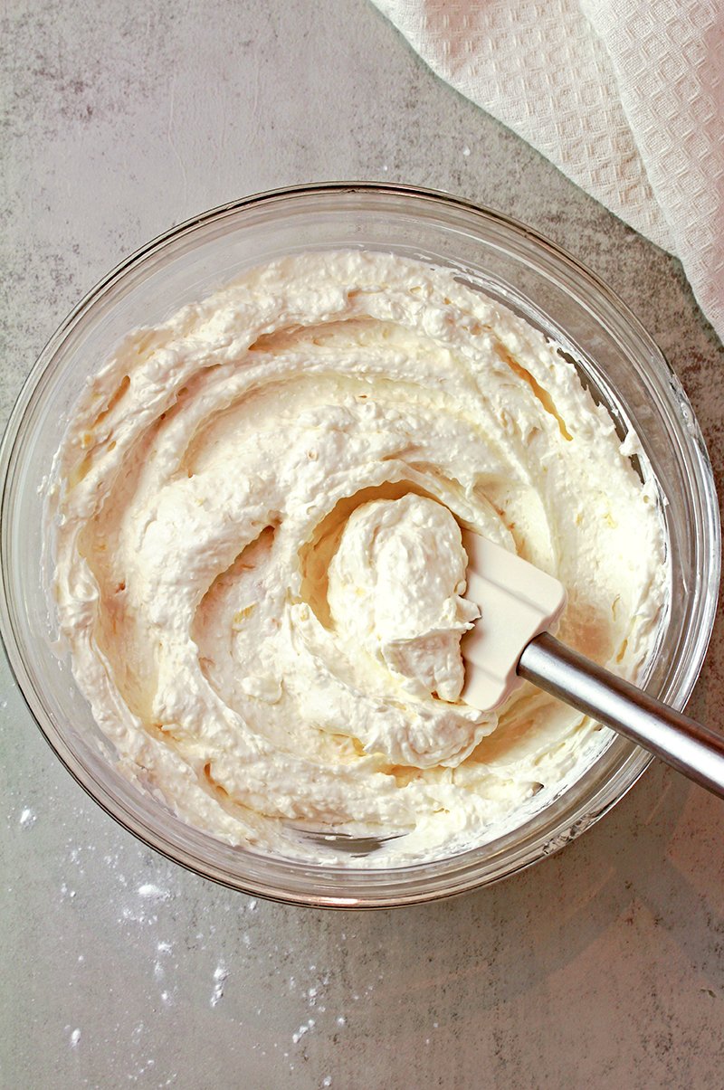 Whipping cream lightens the frosting and makes it fluffy and easy to pipe.