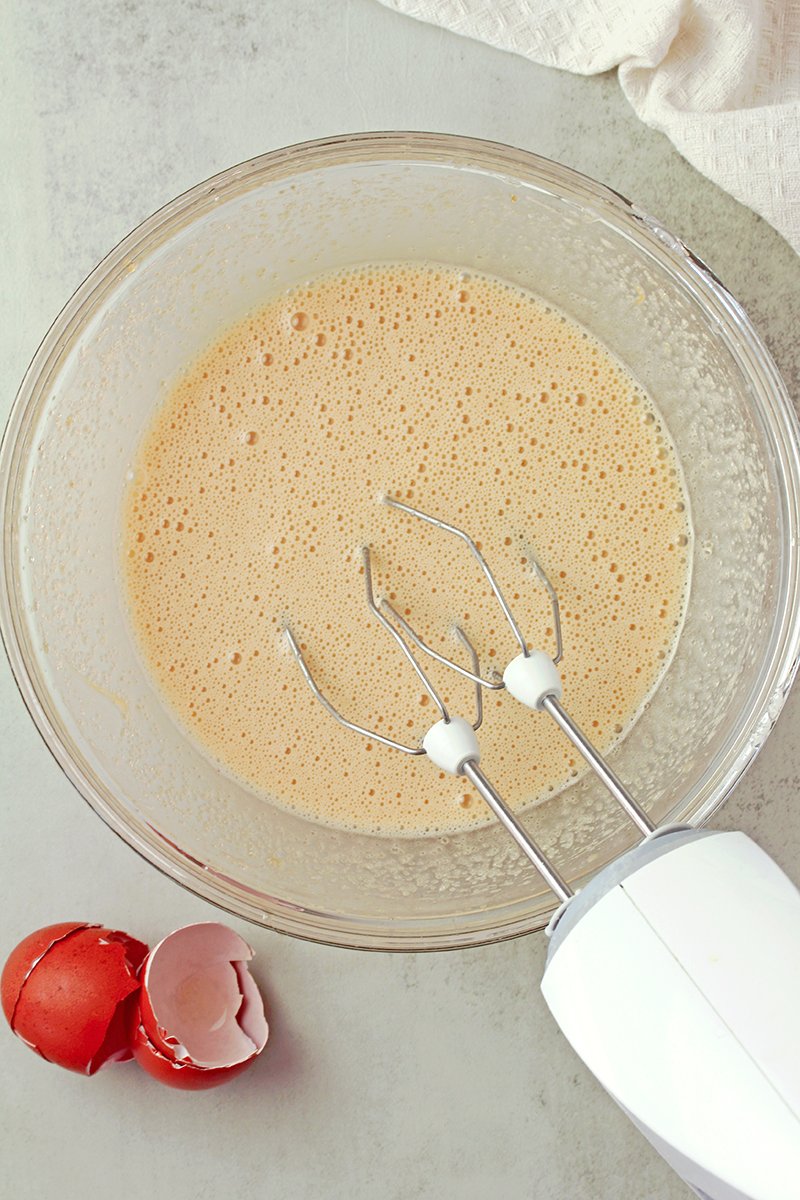 In a separate bowl, beat the eggs, granulated sugar, brown sugar, oil and vanilla extract until the mixture becomes smooth and glossy.