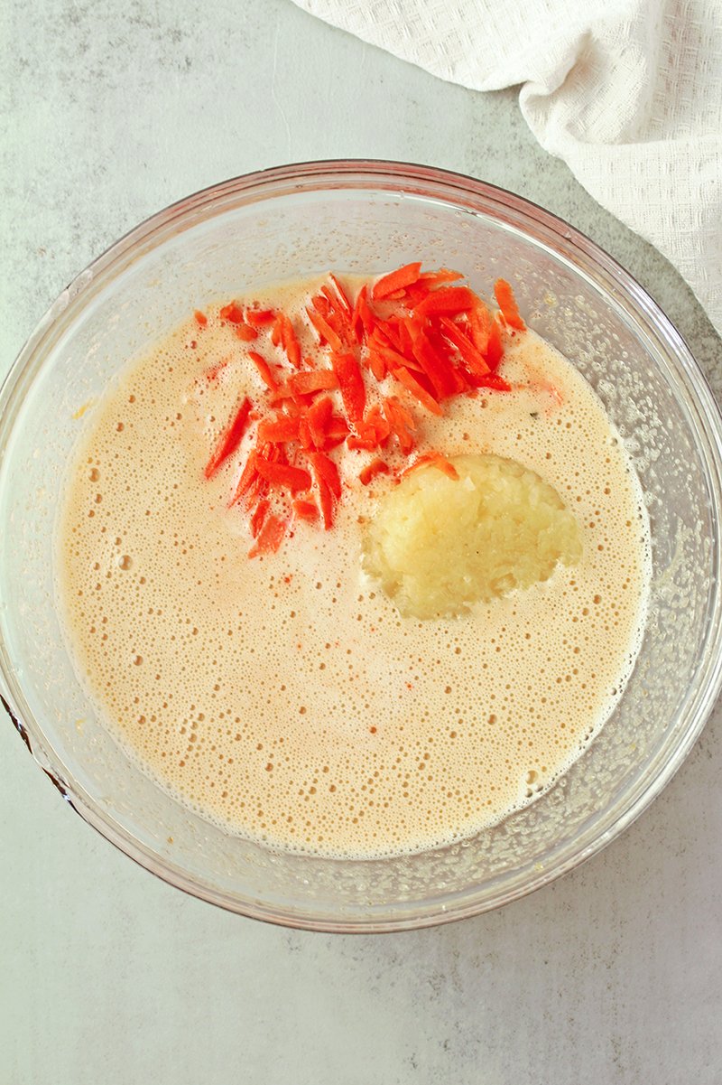 Finely grated carrots blend smoothly into the batter and add natural moisture without weighing it down.