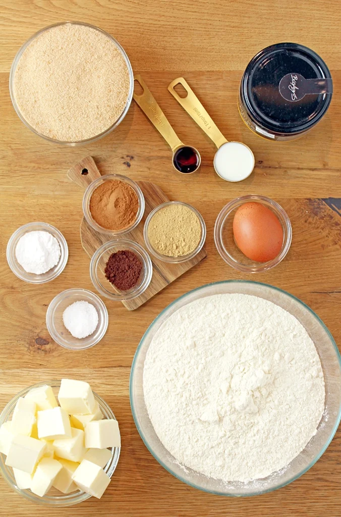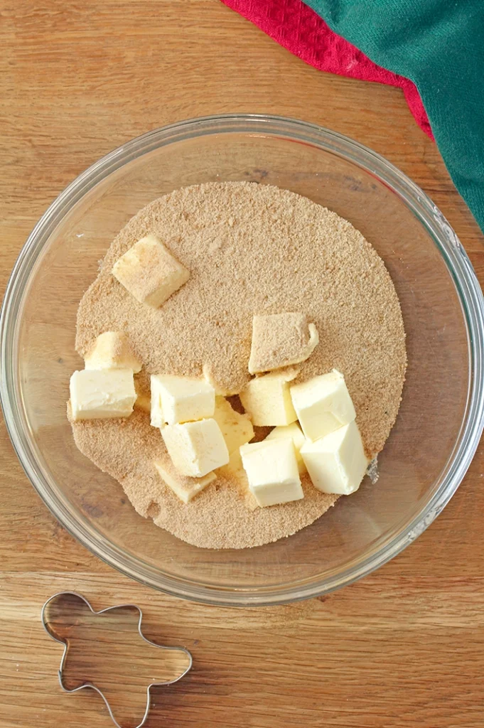 Mix the dry ingredients – flour, spices, baking soda, and salt. Mix the wet ingredients by beating the butter and brown sugar, then add the molasses, egg, and vanilla. Combine the dry and wet ingredients to form a soft dough.