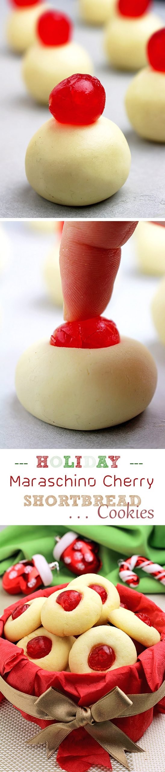 Holiday Maraschino Cherry Shortbread Cookies… Christmas, New Year, Santa Claus, Christmas Tree, Cookies… everything is about holidays these days.