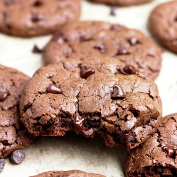 Double Chocolate Cheesecake Cookies- cookies that all chocolate fans will love. Crunchy on the outside and soft inside with melted chocolate chips and cream cheese - OMG that sounds great!