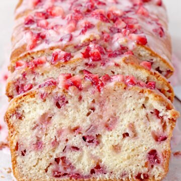Fresh Strawberry Bread – this soft and moist bread full of fresh and juicy, diced strawberries topped with strawberry glaze is a real breakfast treat, a snack or a dessert.